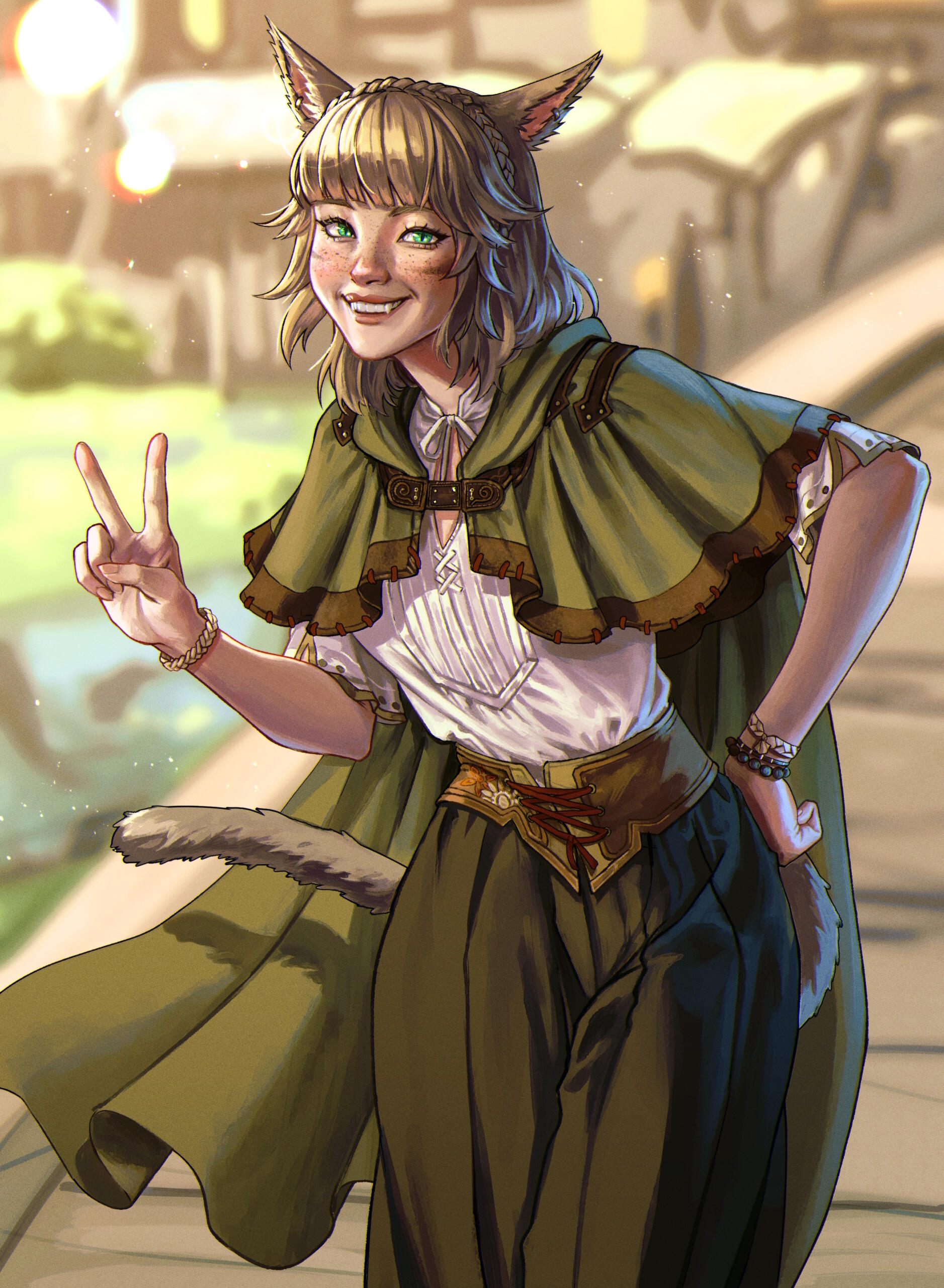 For as long as she could remember, the Garlean Empire was a looming presence in her life. Her tribe, like the few others in Gyr Abania, learned to avoid the Imperials by navigating the land using its naturally provided shortcuts and foliage. Unfortunately, some of V'ruti's tribemates weren't lucky enough to avoid being captured or executed.With the Empire increasing their military presence due to an oncoming war with the Eorzean Alliance, V'ruti knew it was only a matter of time before she would share the same fate as her dead tribemates. So, she developed a plan for her and her brother, V'ish, to abandon their tribe and head somewhere that was safer than their homeland.The siblings eventually came across the city-state known as Ul'dah. They were enamored by the city-state's diverse population and its customs. Although, a new set of challenges faced them here: assimilating into an unfamiliar culture amongst traders, nobles, and criminals.